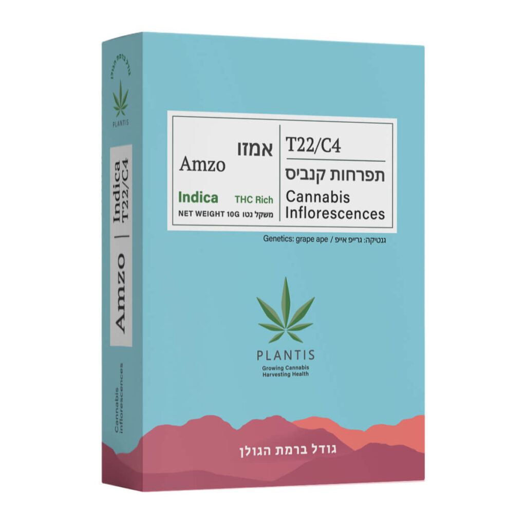 הזן אמזו (Amzo) מסווג כתפרחת אינדיקה מקטגוריית מינון T22/C4. בנוסף, אמזו מגודל על ידי פלאנטיס במתקן חממה המבוסס על אור שמש בישראל, בעוד השיווק מתבצע אף הוא על ידי החברה באריזת שקית ללא מיתוג. לפיכך, המוצר מוצג כמוצר שעובר תהליך ייצור וגידול רציף תחת פיקוח יצרני.מק״ט:82149
