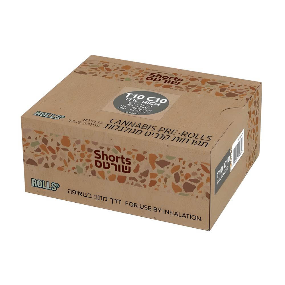 פרופיל הקנבינואידים של גליליות שורטס כולל ריכוז THC בטווח 12%–9.7%, לצד CBD הנע בין 12% ל־9.7%. לכן, שילוב נתונים זה מתאים לקטגוריית מינון T10/C10.